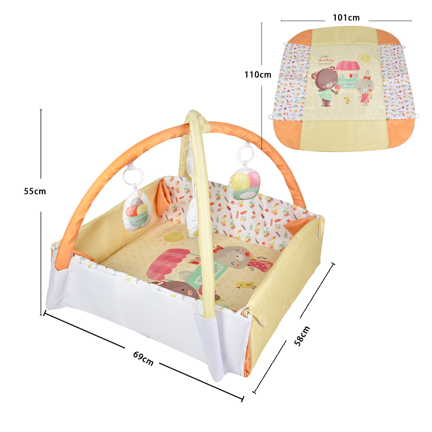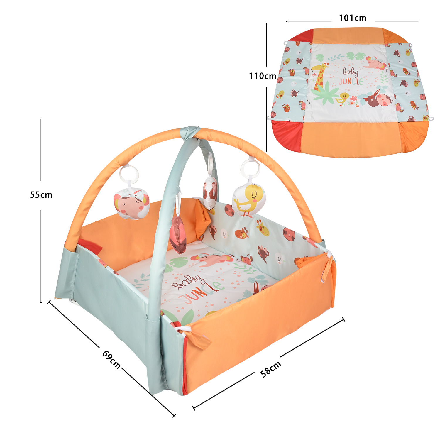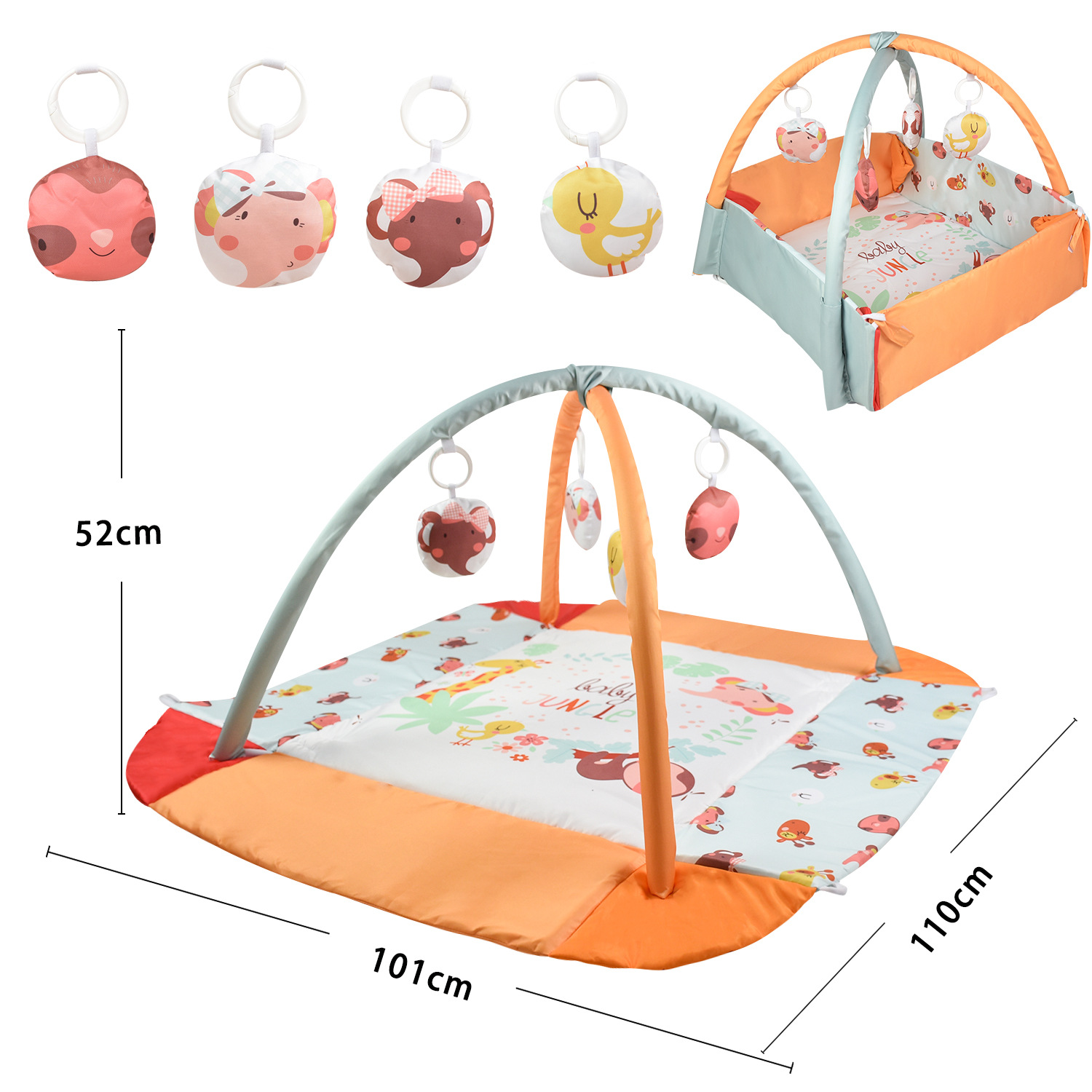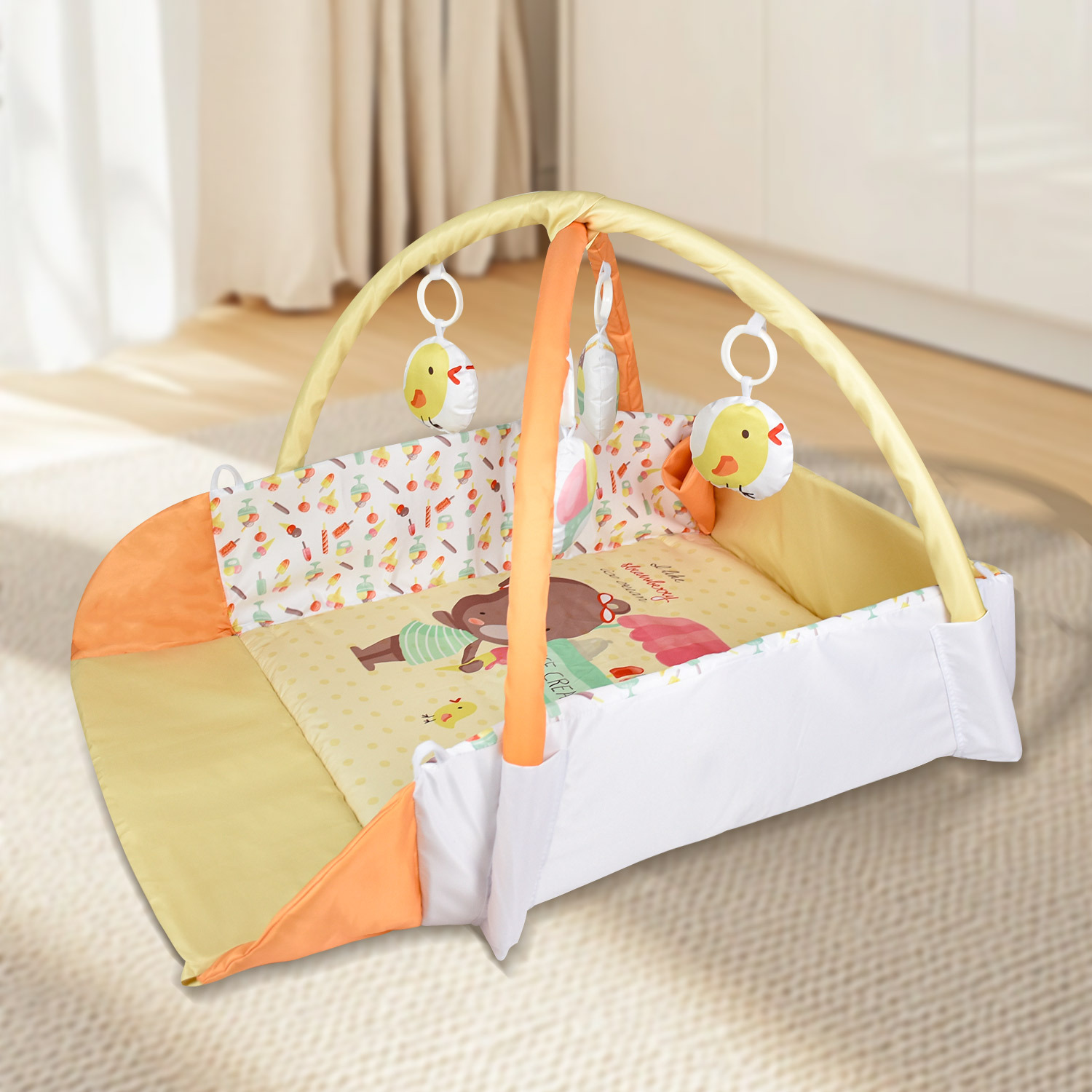 アーチ型の吊り下げバーには揺れる玩具が付いており、赤ちゃんの好奇心を刺激します。
