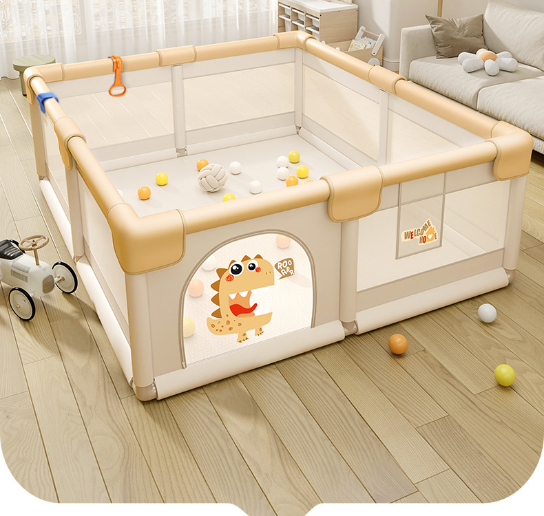可愛い恐竜のイラストが入った安全なベビーサークルです。