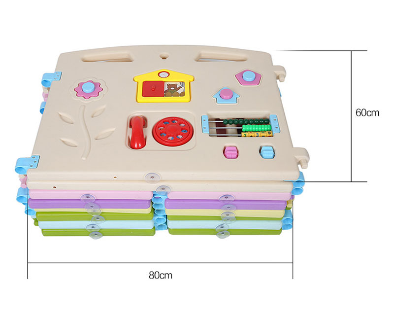 赤ちゃんの安全な遊び場を簡単に作れるベビーサークルです。 折りたたみ可能なパネル式設計で、使わない時はコンパクトに収納できます。 パネルには電話や時計、そろばんなどの知育玩具が付いており、遊びながら学べる工夫が満載です。 組み立ても簡単で、お部屋のスペースに合わせて自由に形を変えられます。 軽量で持ち運びやすく、お掃除の際も移動が楽々です。 赤ちゃんの成長を見守る安心空間を提供します。