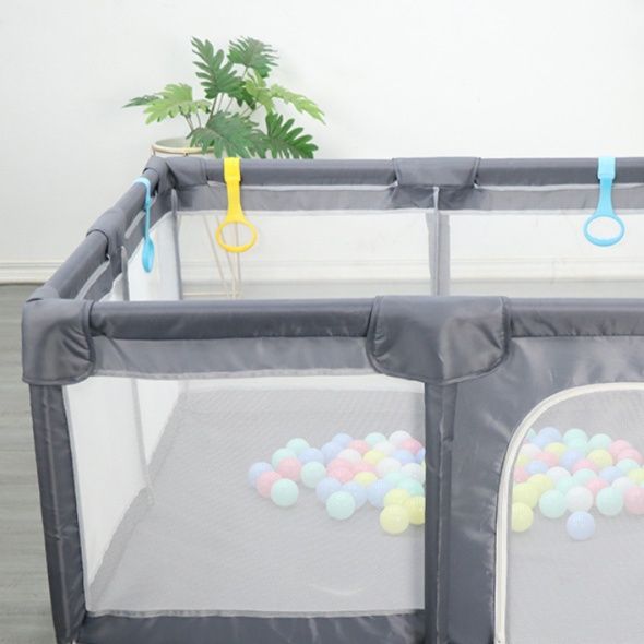 赤ちゃんの安全な遊び場を確保できるベビーサークルです。 四方をメッシュ素材で囲んでいるため通気性に優れ、外から中の様子がしっかり見えて安心です。 出入り口付きで赤ちゃんの出し入れもスムーズに行えます。 底部にはキャスター付きで移動も簡単、広々とした空間でお子様がのびのびと遊べる設計になっています。 リビングや寝室など様々な場所でご使用いただけます。