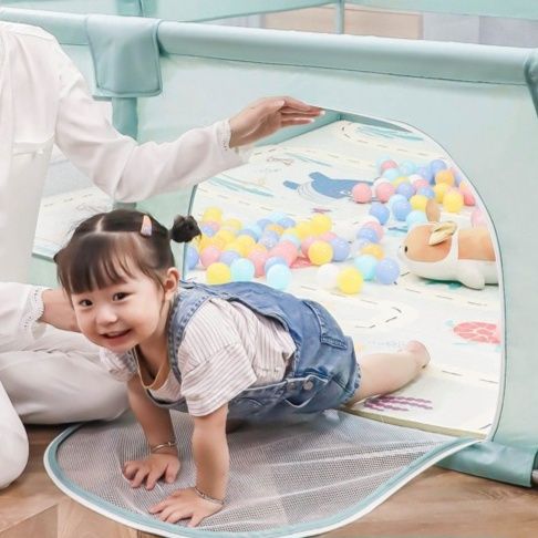 赤ちゃんの安全な遊び場を確保できるベビーサークルです。 四方をメッシュ素材で囲んだ設計により、常にお子様の様子を確認できます。 広々とした空間でボールプールやおもちゃ遊びが楽しめ、クッション付きフレームで安全性も確保しています。 組み立て式で設置や移動も簡単です。 リビングや子ども部屋に最適な大型タイプのベビーサークルで、安心して家事ができます。