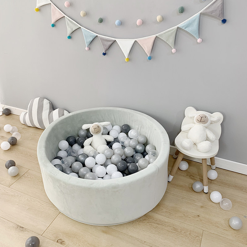 丸型デザインで柔らかな素材を使用しており、たくさんのボールを入れてボールプールとしても楽しめます。